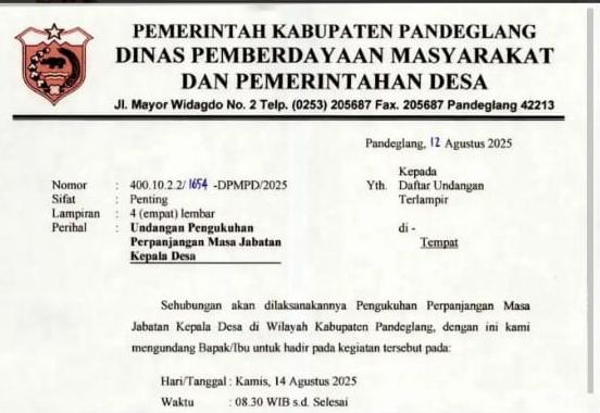 Rencana pelantikan kades diketahui dari beredarnya surat undangan dari Dinas Pemberdayaan Masyarakat dan Pemerintahan Desa (DPMPD) Kabupaten Pandeglang.