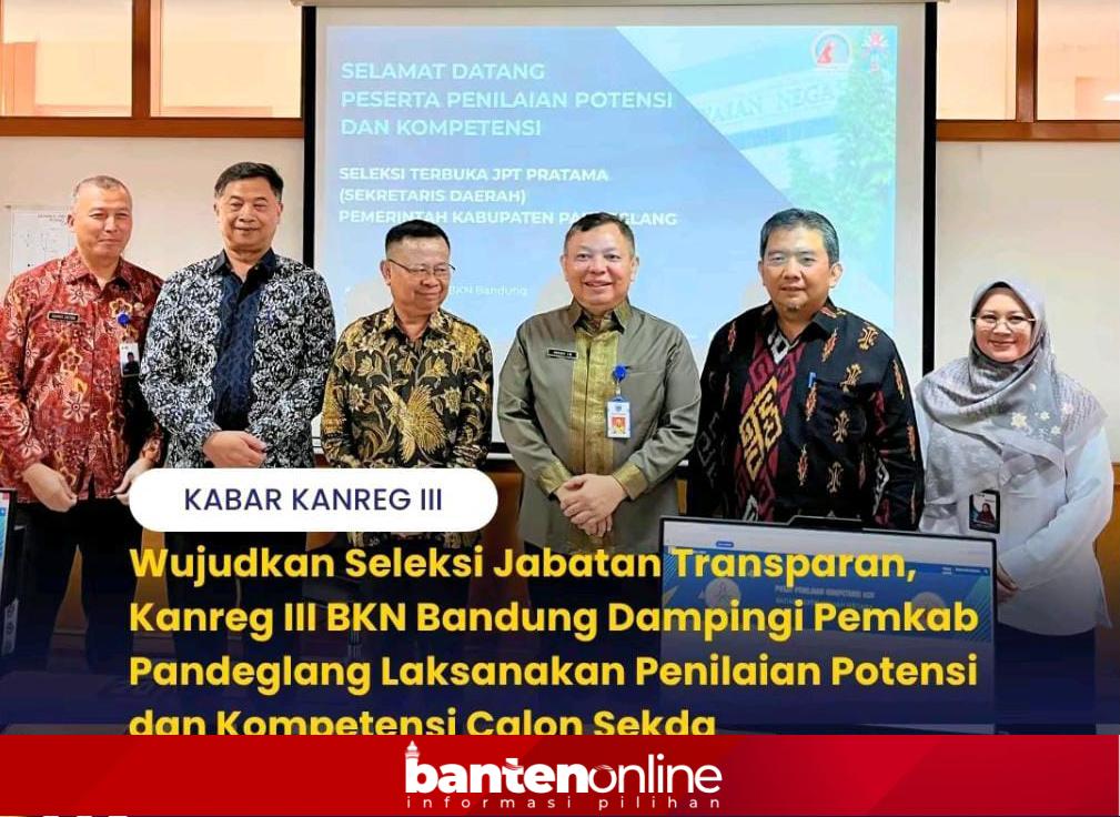 BANDUNG, – Tiga pejabat eselon II Pemkab Pandeglang mengikuti seleksi terbuka Jabatan Pimpinan Tinggi (JPT) Pratama untuk posisi Sekretaris Daerah (Sekda) Pandeglang. Seleksi ini difasilitasi oleh Kantor Regional III BKN Bandung dan digelar pada 15-16 Oktober 2025.