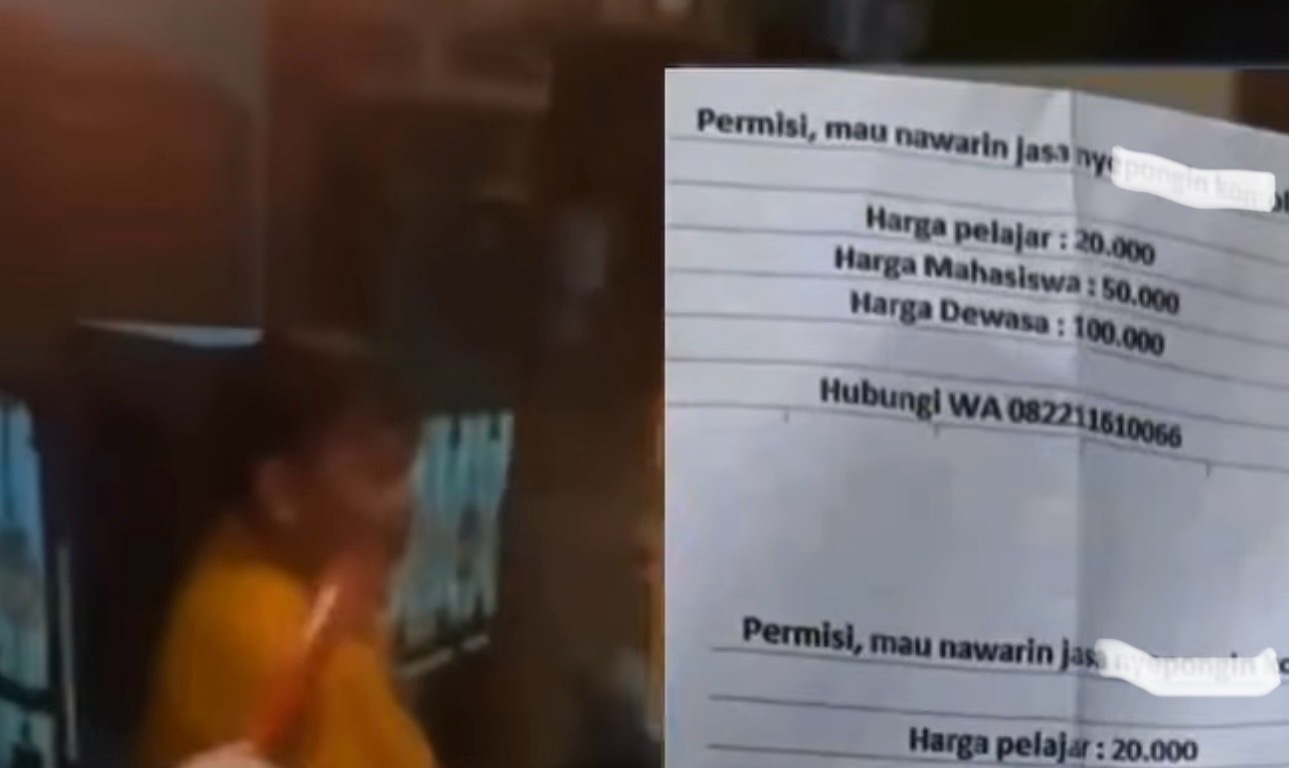 Selebaran tersebut diketahui memuat penawaran jasa dengan konten vulgar serta mencantumkan nomor kontak yang dapat dihubungi.