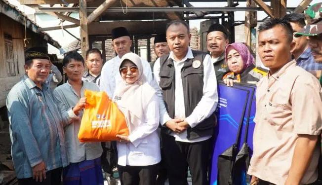 Bupati Pandeglang Raden Dewi Setiani turun langsung memberikan bantuan kepada dua korban musibah kebakaran yang terjadi Kamis 31 Juli 2025 lalu di Kampung Kuranten, Kelurahan Saruni Kecamatan Majasari.