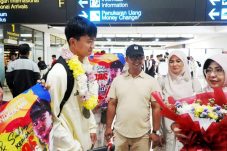 Bupati Dewi Sambut Ibnu Alan, Juara AFF Futsal U-16 Asal Pandeglang, di Bandara Soetta