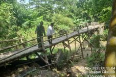 Danramil Cikeusik dan Kepala Desa Tinjau Jembatan Blengbeng yang Viral di Media Sosial