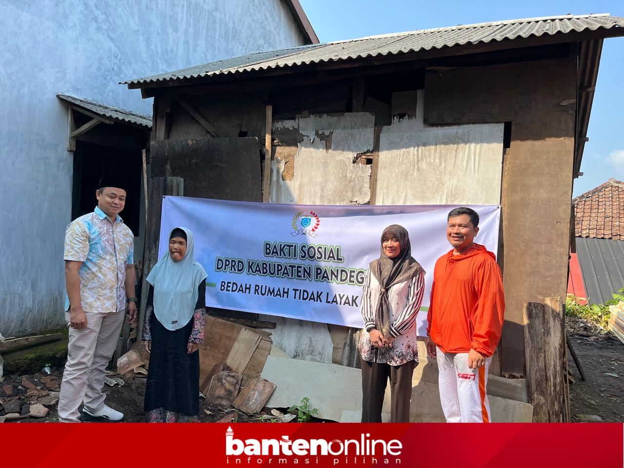 PANDEGLANG, -DPRD Kabupaten Pandeglang melaksanakan kegiatan bakti sosial (Baksos) berupa bedah rumah milik Ruminah di Kampung Balegede, Desa Gunungsari, Kecamatan Mandalawangi, Kabupaten Pandeglang, Kamis (25/09/2025).