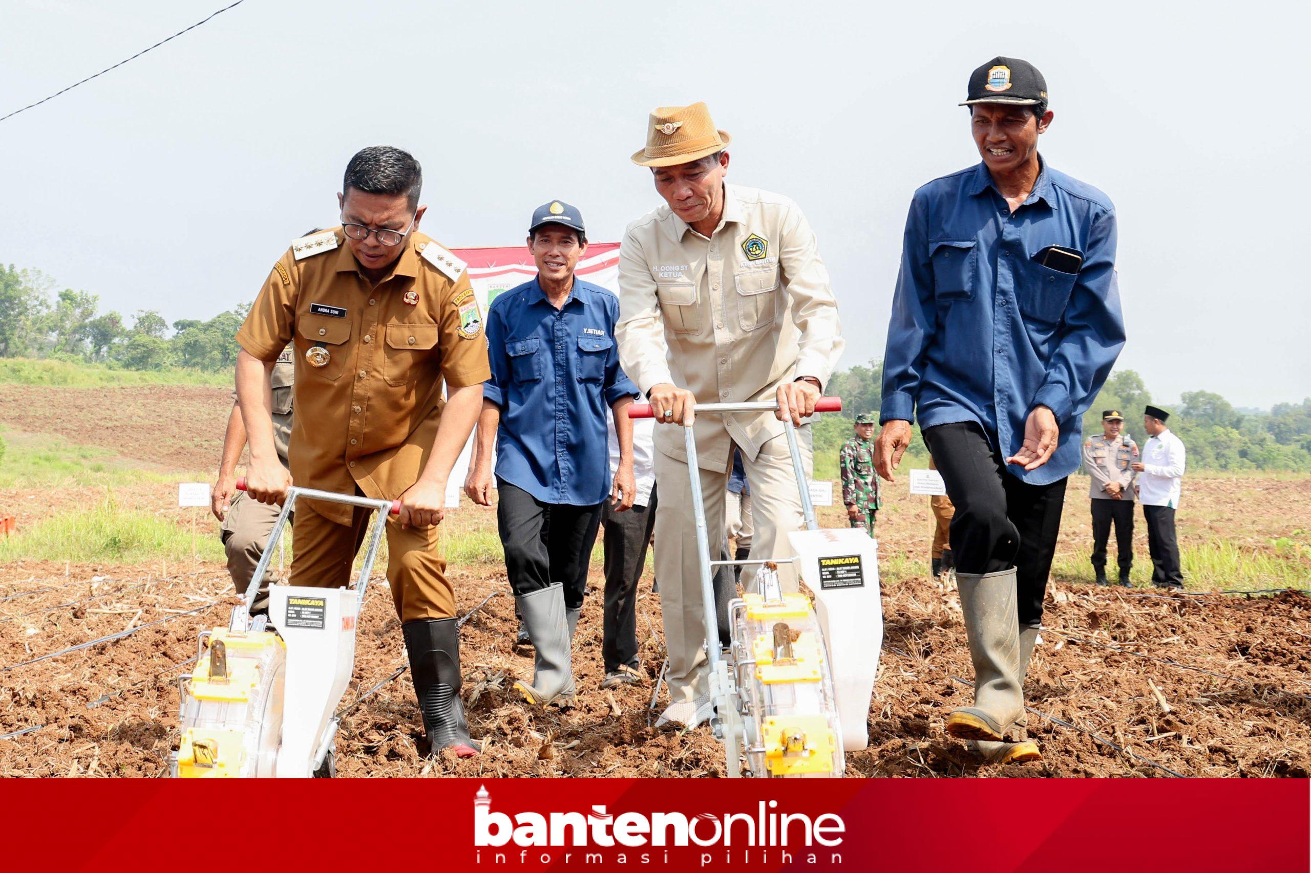 Pencanangan dilakukan di lahan seluas 10 hektare bersama kelompok tani Mekarjaya, Desa Mekarsari, Selasa (21/4/2026). Bibit jagung yang digunakan merupakan bantuan dari Pemerintah Provinsi (Pemprov) Banten.