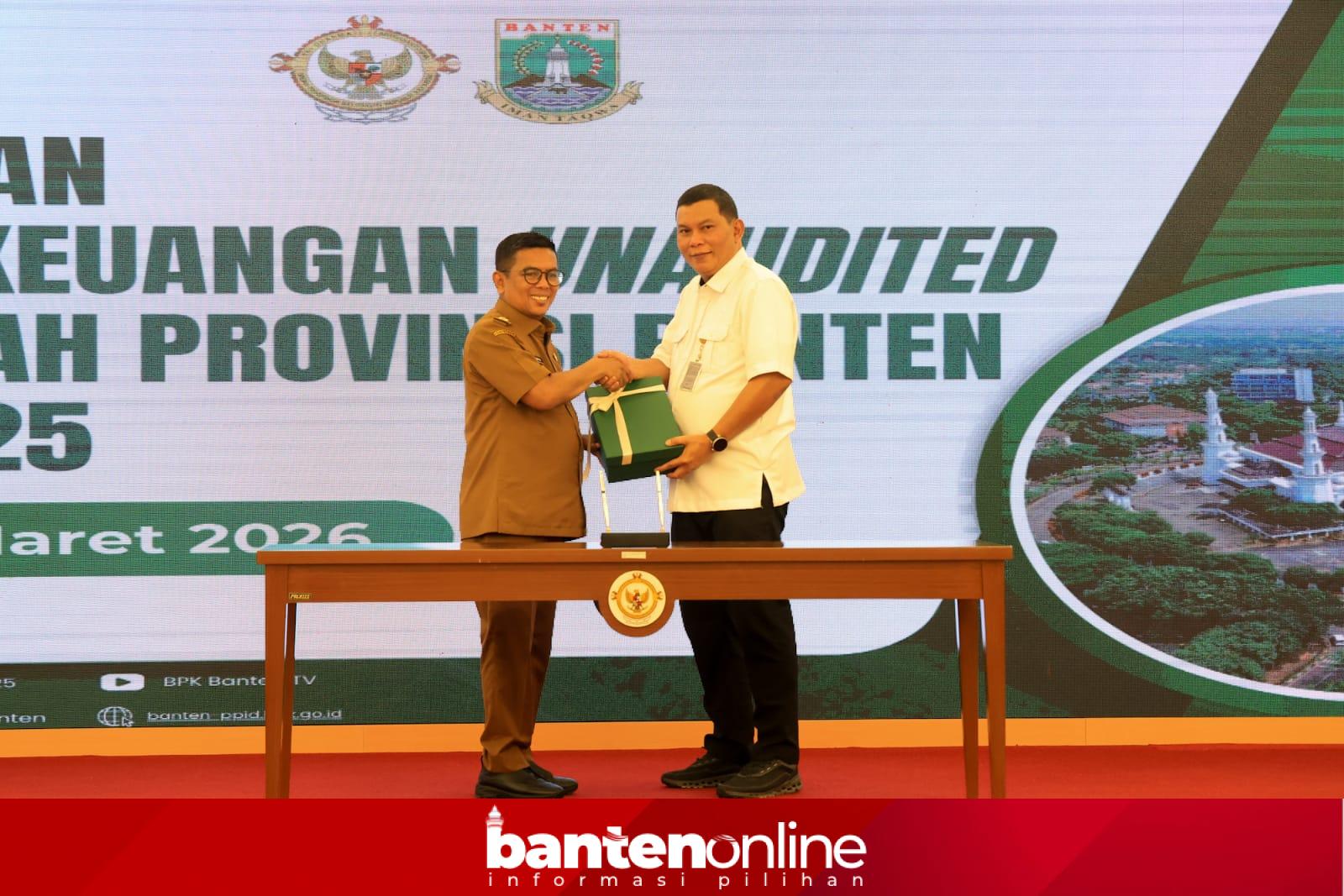 SERANG, –Gubernur Banten Andra Soni resmi menyerahkan Laporan Keuangan Pemerintah Daerah (LKPD) Tahun 2025 unaudited kepada Badan Pemeriksa Keuangan (BPK) Perwakilan Provinsi Banten, Senin (30/3/2026).