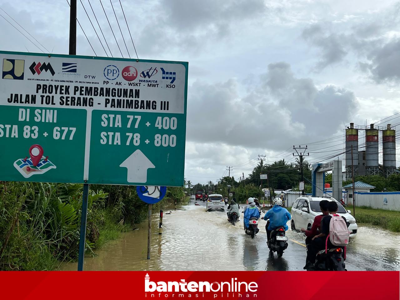 Menurut dia, air yang menggenangi jalan di depan pintu Tol Panimbang berasal dari luapan Sungai Cilatak.