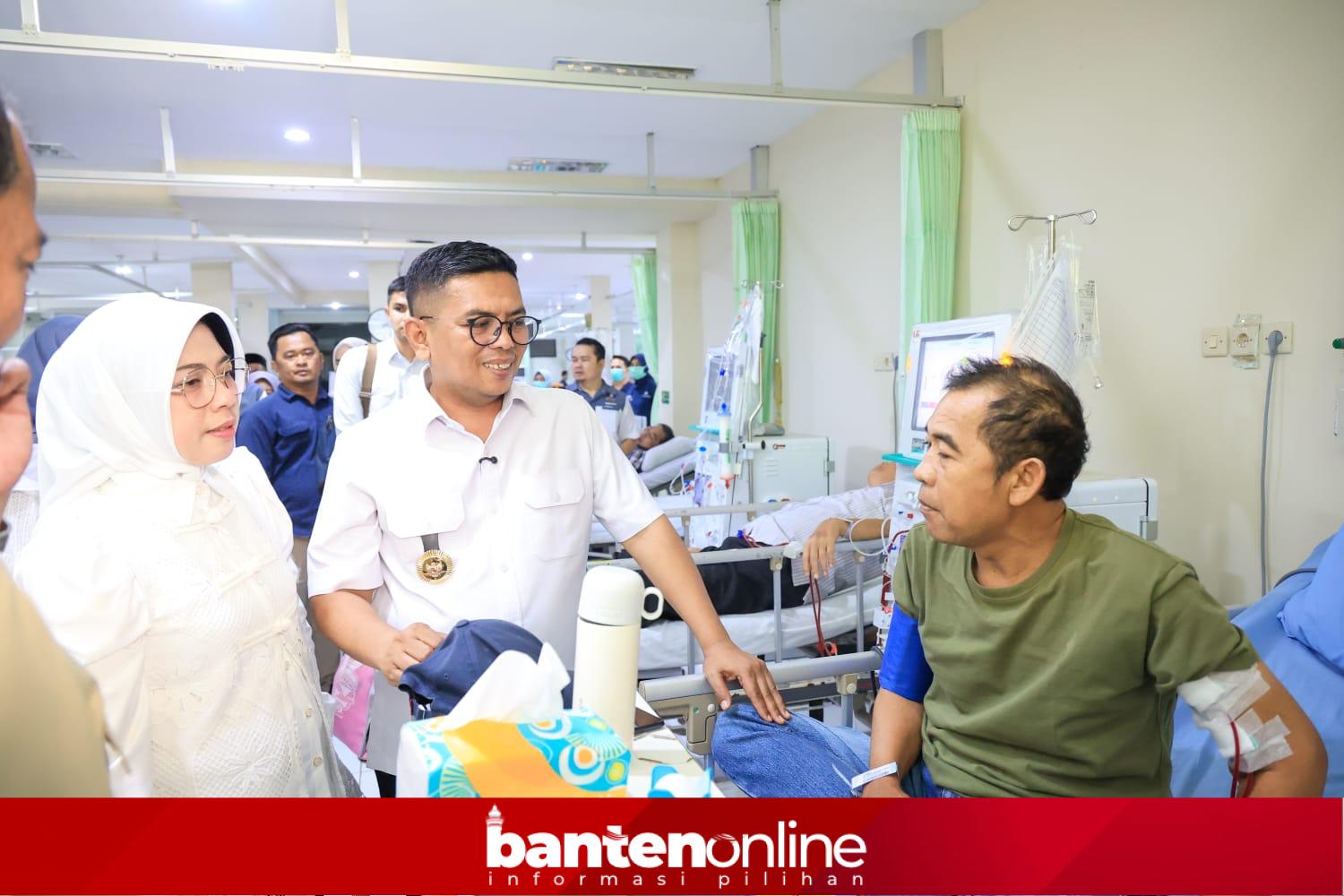 Saat meninjau RSUD Banten, Andra juga menyempatkan diri menyapa pasien dan keluarga.
