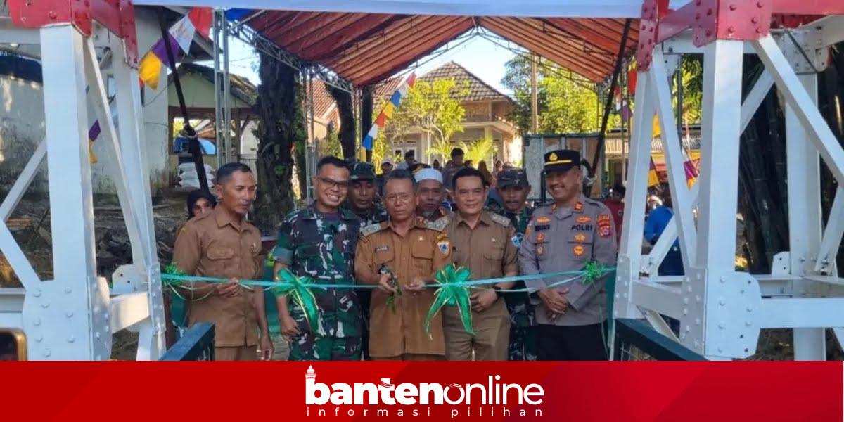 PANDEGLANG, –Jembatan gantung Blengbeng di Desa Cikeusik, Kecamatan Cikeusik, Kabupaten Pandeglang, Banten, akhirnya rampung dibangun. Proyek ini diselesaikan dalam waktu sekitar dua bulan oleh TNI bersama warga.