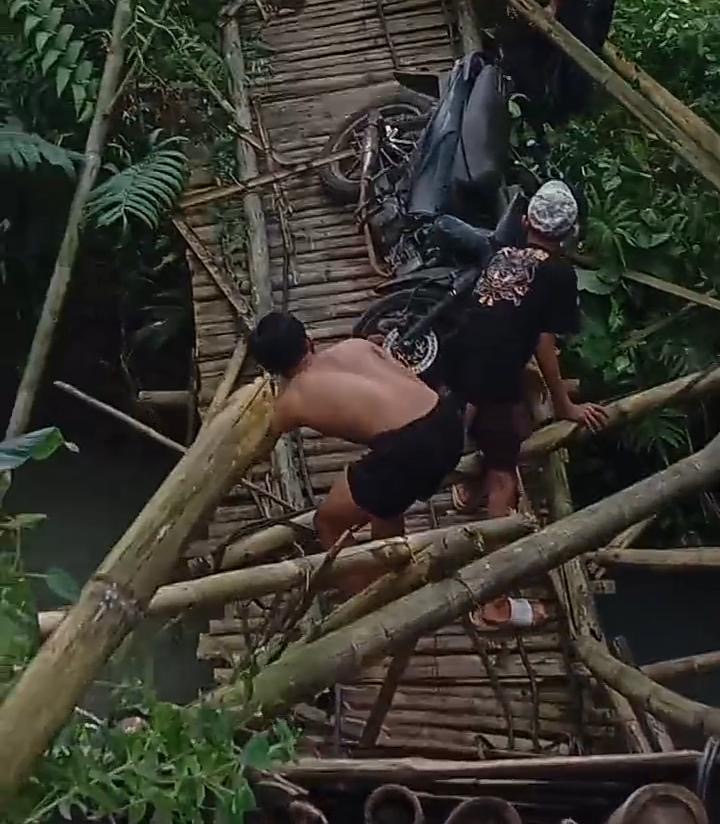 Ambruknya jembatan yang menghubungkan Kampung Ciliang RT 05/RW 01 ke Kampung Pasir Haur RT 02/RW 04 Kelurahan Kadumerak itu terjadi saat seorang santri menggunakan kendaraan bermotor melintas di jembatan yang terbuat dari batang bambu dan nyaris hanyut ke kali dibawahnya.