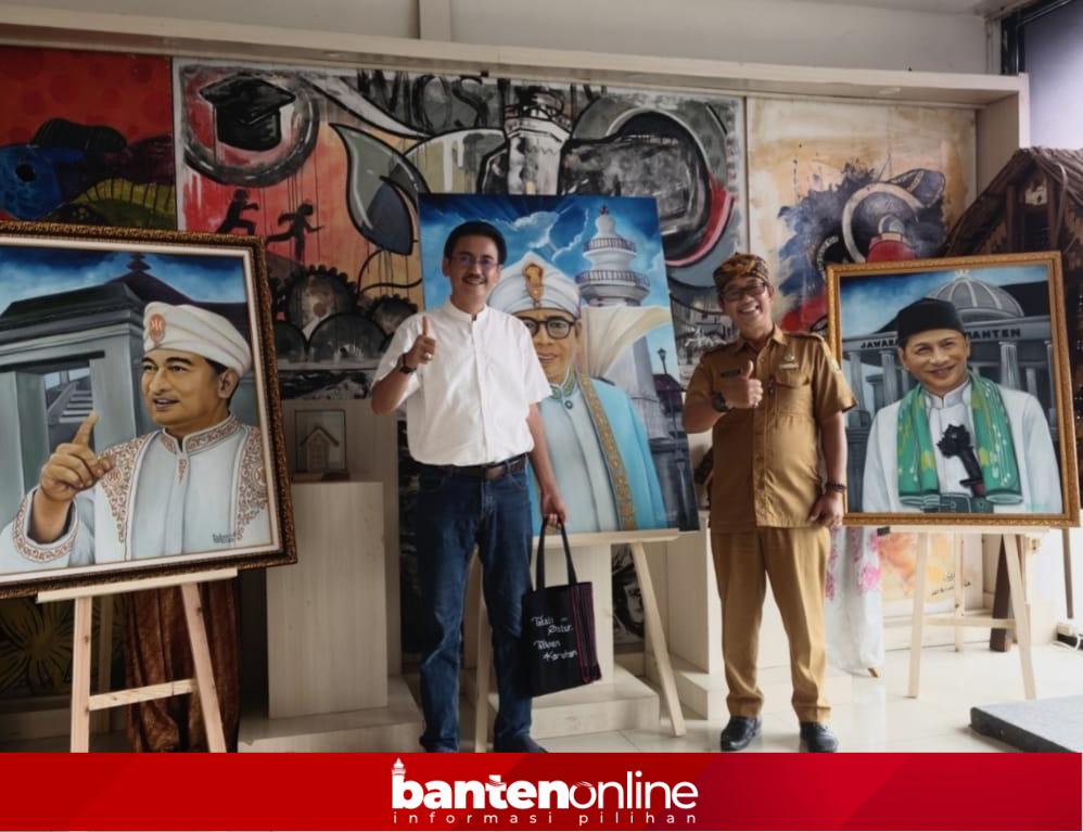 “Iya, itu lukisan Pak Andra Soni, Pak Dimyati dan Pak Sekda hasil karya saya yang diaelesaikan dalam sepekan terakhir setelah dilantik oleh Pak Gubernur,” kata Rohaendi kepada wartawan, Kamis (16/4/2026).
