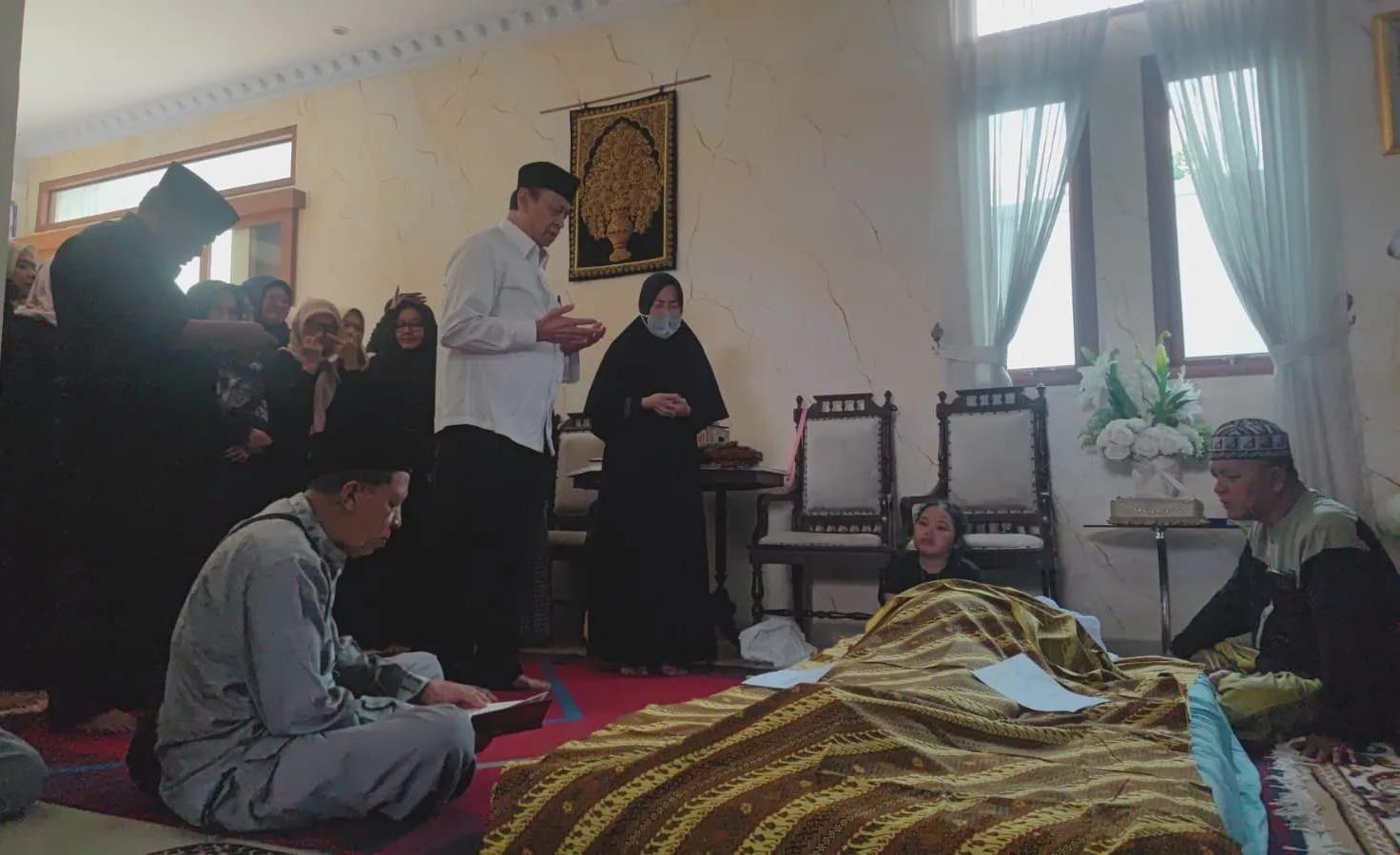 Wahidin kemudian masuk ke dalam rumah untuk berbincang dengan keluarga almarhum. Ia pun terlihat berdiri tepat di samping jasad almarhum lalu kemudian berdo’a.