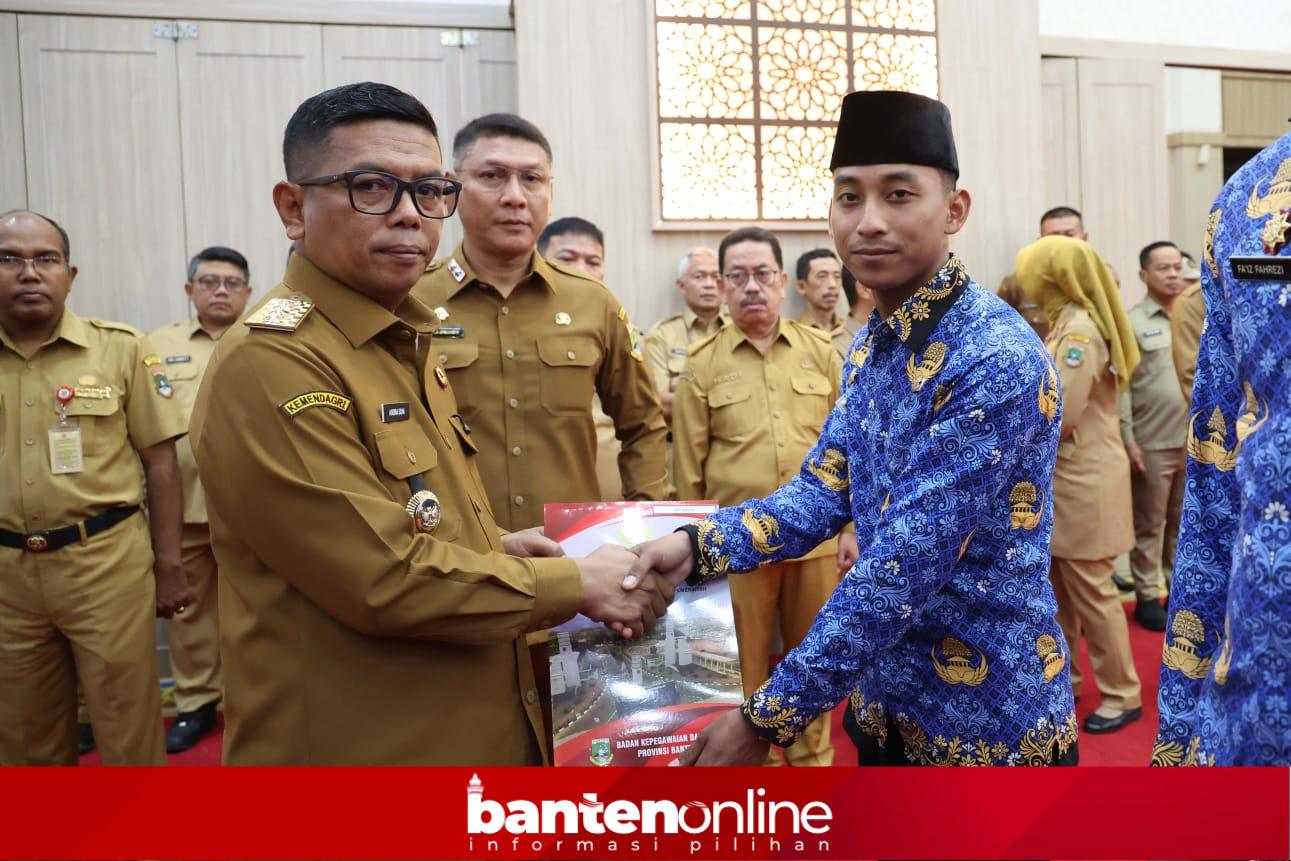 SK diserahkan secara simbolis oleh Gubernur Banten Andra Soni di Pendopo Gubernur, Kawasan Pusat Pemerintahan Provinsi Banten (KP3B), Curug, Kota Serang, Senin (15/12/2025). Penyerahan juga dilakukan secara daring di masing-masing instansi.
