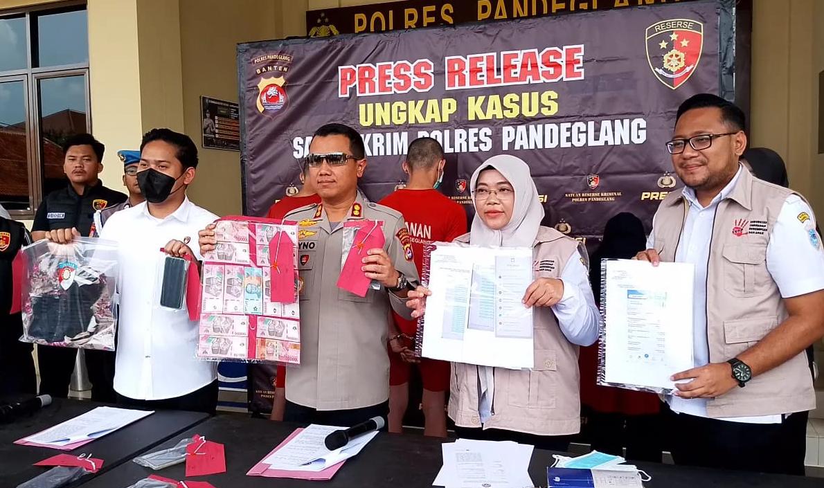 Jajaran Satreskrim Polres Pandeglang, Polda Banten berhasil mengungkap kasus Tindak Pidana Perdagangan Orang (TPPO) dan berhasil menangkap empat tersangka, dua diantaranya pasang suami istri (Pasutri).