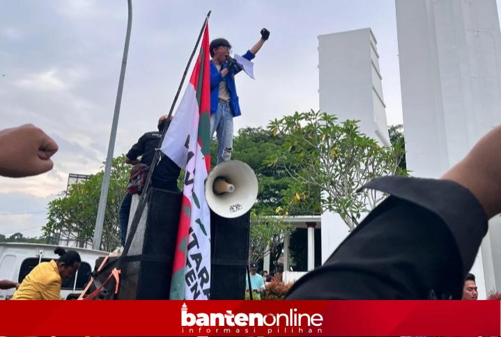 Dalam aksinya, mahasiswa menyampaikan sejumlah tuntutan terkait berbagai persoalan di Banten yang dinilai belum terselesaikan selama satu tahun terakhir.