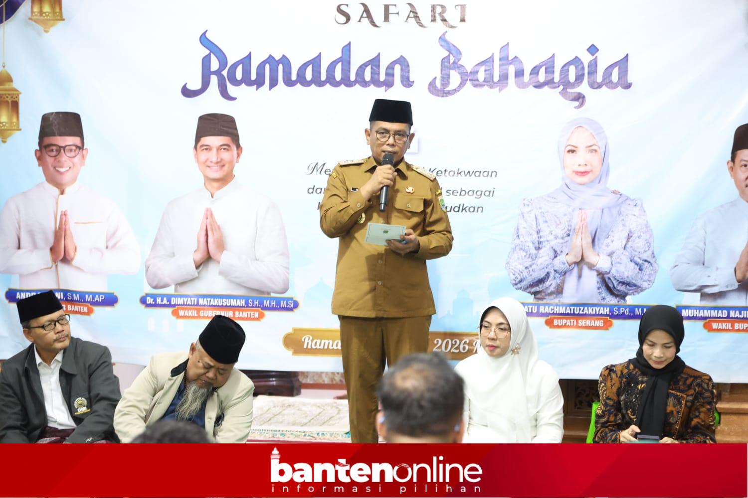 Hal itu disampaikan Andra Soni saat menghadiri Safari Ramadan di Masjid Al-Kautsar, Desa Sindanglaya, Kecamatan Cinangka, Kabupaten Serang, Senin (2/3/2026).