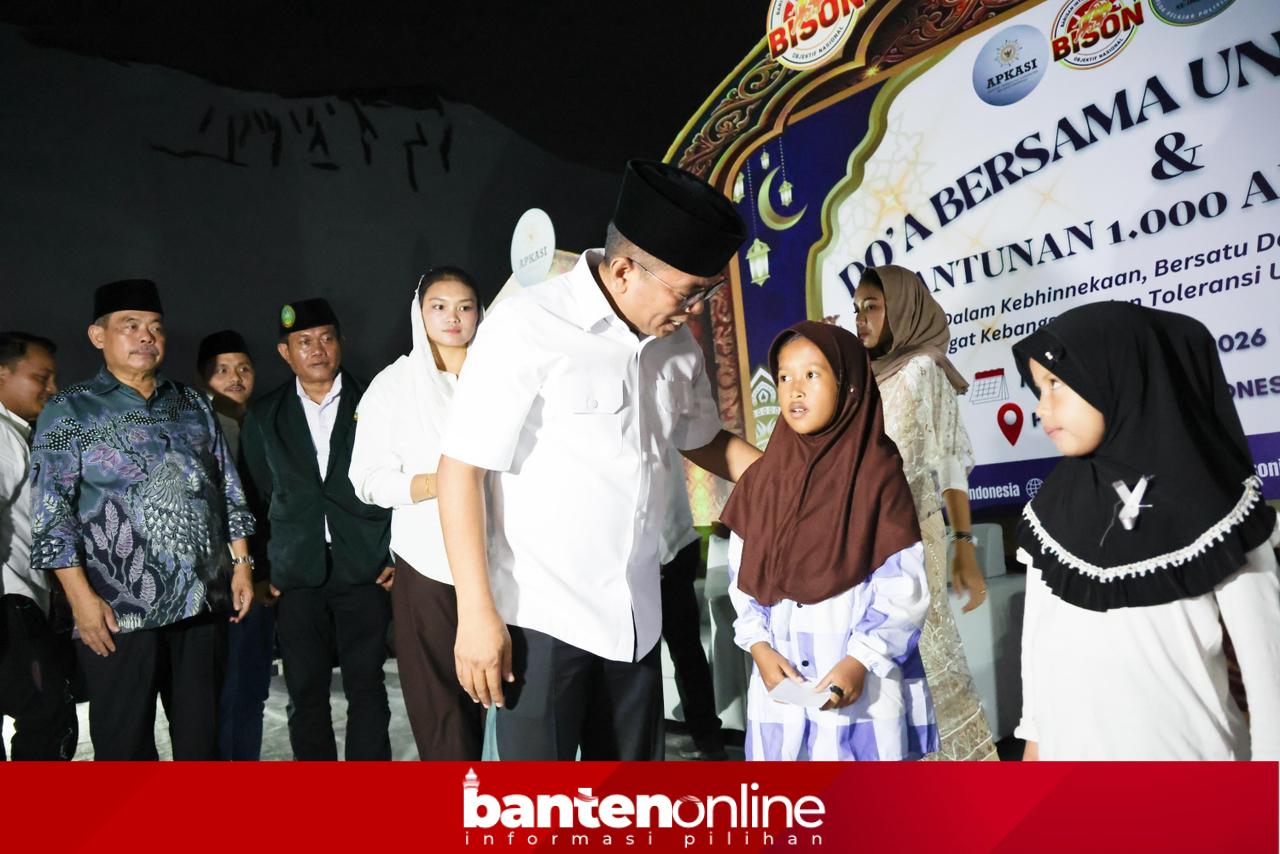 Penegasan itu disampaikan Andra saat menghadiri kegiatan Doa Bersama untuk Negara dan Santunan 1.000 Anak Yatim yang digelar organisasi Barisan Intelektual Strategi Objektif Nasional Indonesia (BISON) di Cipocok Jaya, Kota Serang, Minggu (8/3/2026).