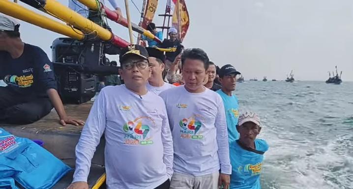 Acara Tradisi Ruwat Laut di Carita yang digelar oleh para nelayan sebagai bentuk tanda syukur atas keberkahan dari Allah SWT dipuncak Hari Jadi Carita ke-47, dihadiri langsung Gubernur Banten Andra Soni dan Bupati Pandeglang Raden Dewi Setiani, Minggu (13/07/2025).