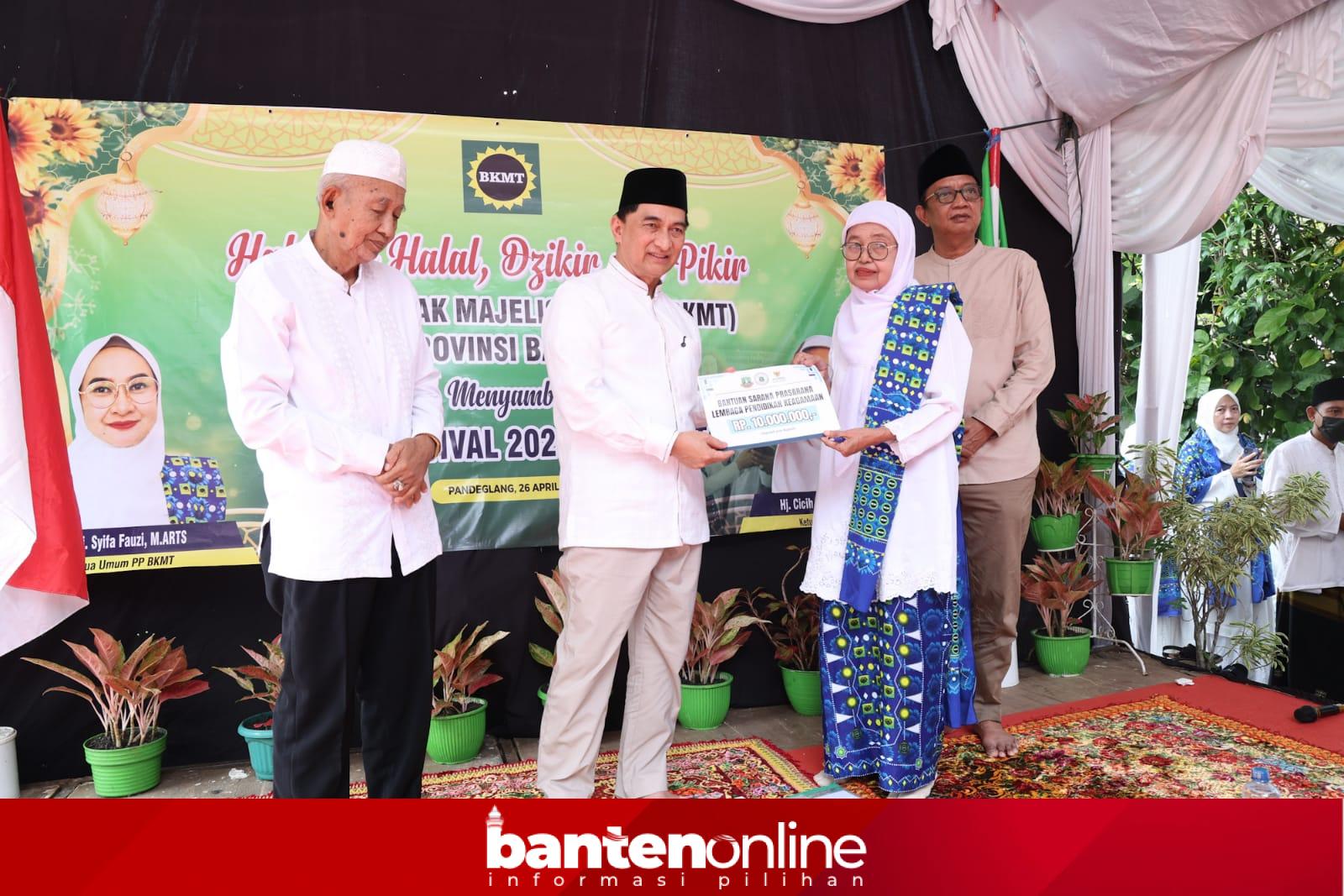 Sebagai bentuk dukungan, Dimyati juga menyerahkan bantuan operasional sebesar Rp10 juta kepada BKMT Provinsi Banten.