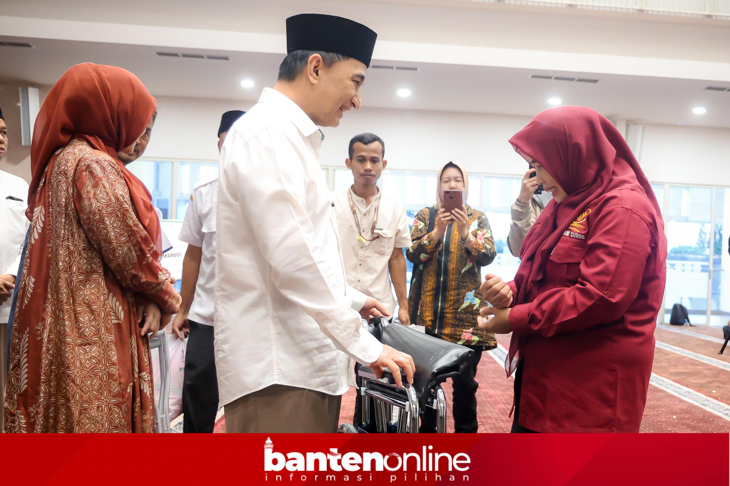 TANGERANG, –Wakil Gubernur (Wagub) Banten, Achmad Dimyati Natakusuma, menyalurkan bantuan kursi roda kepada Sutikno (57), warga Desa Kadu, Kecamatan Curug, Kabupaten Tangerang. Bantuan diserahkan saat kegiatan Safari Ramadan di Masjid Baitul Mukhtar, Rabu (4/3/2026).